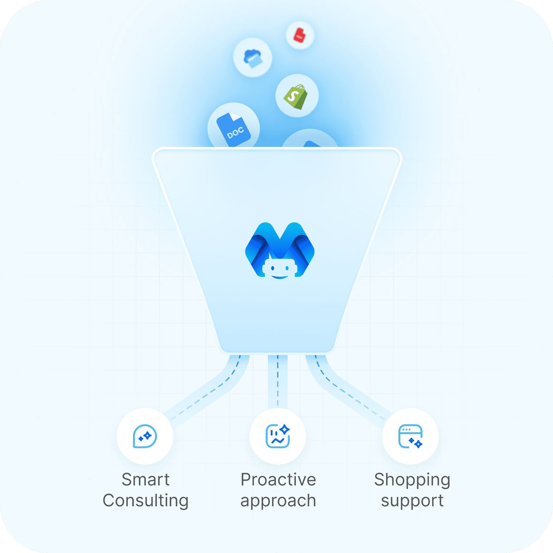 magnamate wird in Windeseile zum absoluten Experten für deinen Webshop. Er beantwortet Fragen auf konstant hohem Niveau und orientiert sich dabei an deiner ganz individuellen Markenidentität. Dank seiner Agentic-AI-Fähigkeiten unterstützt er deine Kunden außerdem im gesamten Kaufprozess – von der Produktberatung bis hin zu Bestellstatus-Updates.