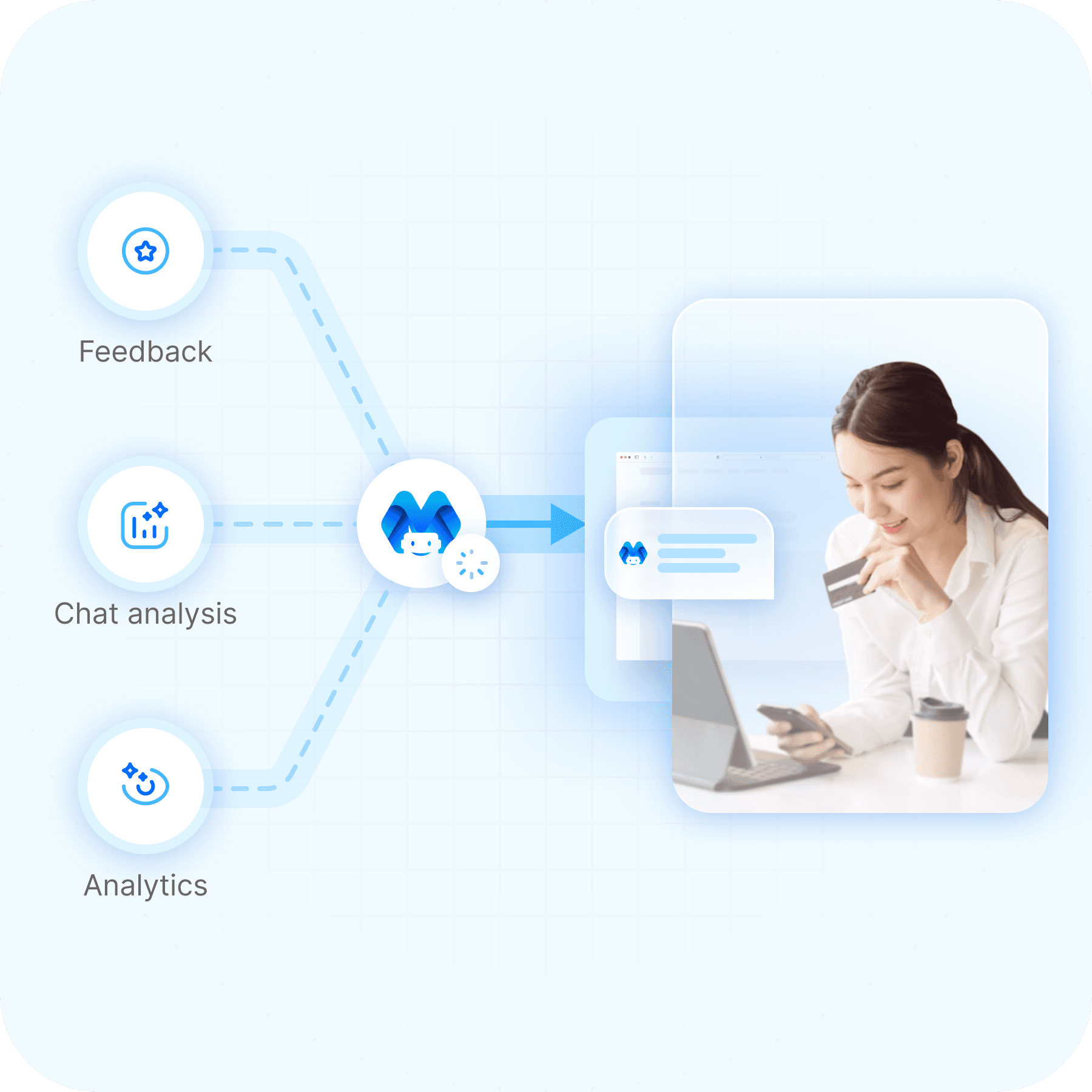 Völlig autonom und in regelmäßigen Intervallen lernt magnamate alles Wichtige über deinen Onlineshop. Damit ist er für jedes Kundengespräch bereit.